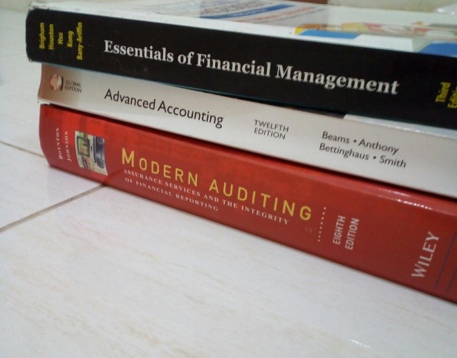 Akuntansi itu seni. Di jurusan ini, aku belajar bahwa Akuntansi itu bukan hanya sekedar Debet atau Kredit. Jurusan ini mengajarkanku diawali dari transaksi yang terjadi, menjadi sebuah laporan keuangan hingga mempertanggungjelaskan laporan tersebut sebagai dasar membuat keputusan. Masalah tugas banyak pake banget? Tentu saja. Jangan pernah marah ataupun sedih dengan tugas yang banyak di jurusan ini, ketika kerja nanti kalian pasti akan mengerti dan terbiasa (berdasarkan pengalaman magang di Kantor Akuntan Publik).