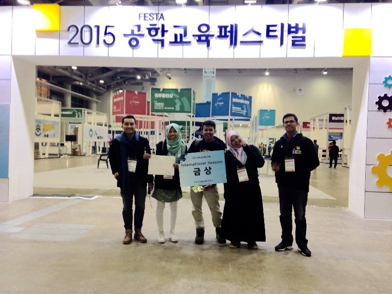 Lalu, sedikit cerita tentang hal yang paling kusyukuri bisa kuliah di PENS itu, salah satu mimpi ku bisa terwujud berkat berkuliah di PENS, yaitu mimpi ke luar negeri yang masuk ke salah satu list impian 100 mimpi terbesar dalam hidupku hehe. Apalagi kita abroad ga hanya sekedar travelling, tetapi kita bisa melakukan hal yang bermanfaat dan mengharumkan bangsa kita. PENS membuatku bisa mengenal arti dari international friendship, perbedaan culture, bahasa, cara fikir dan perkembangan teknologi, bisa punya teman dari beberapa negara melalui kegiatan engineering service, Creativity Station yang bekerjasama dengan beberapa universitas yang berasal dari Indonesia, Malaysia dan Korea Selatan. PENS juga mengamanahkan saya dan tema-teman tim Elternator untuk mengikuti international competition dan exhibition, E2Festa atau Engineering Education Festa 2015 di Exco, Daegu, Korea Selatan yang mengantarkan kita meraih Gold Prize Award untuk International Capstone Design Fair. Sangat bersyukur dan Alhamdulillah sekali, banyak hal-hal yang unbelievable sekali.