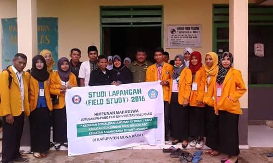 Dipaud itu juga punya tugas lapangan loh teman-teman. Mulai dari observasi ke tk, study lapangan, dan kuliah kerja nyata (kkn). Kalau observasi keTK sih itu udah dilakui dari awal jadi mahasiswi paud uho. Study lapangan? Ini nih yang seru, 5 hari 4 malam dengan perjalan jalur laut, iya naik kapal malam trus sampainya subuh di kab.Muna prov.sulawesi tenggara. Sampai dilokasi study lapangan itu disana kita pergi ke tk yang pelosok dan masih sangat kurang perhatian dari dinas pendidikan dan kebudayaan untuk pendidikan anak usia dini. Disana sangat banyak pengalaman serta ilmu yang kami dapat. Kuliah kerja nyata (kkn) kalau kkn ini 45 hari kakak kami tinggal dirumah warga dan ngelakuin beberapa program kerja serta turun langsung kemasyarakat.